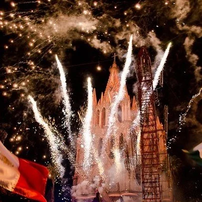 Back in 1810, in the small town of Dolores (today called Dolores Hidalgo, just outside San Miguel de Allende), Father Miguel Hidalgo rang the church bell and called the people to rise up against Spanish rule. That call, known as El Grito, is remembered every September 15th at 11 p.m. across the country. San Miguel de Allende holds a special place in this story because it was one of the first towns to join the rebellion. In fact, Ignacio Allende, whose name the city now carries, was a key leader alongside Hidalgo. The grito in San Miguel isn’t just a ritual—it’s a reenactment of the spark that ignited Mexico’s independence. The fireworks and castillos echo that spirit: fire as a symbol of revolution, light in the darkness, a reminder that change starts with a spark.